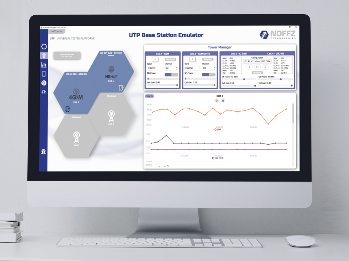 Screenshot of our software for configuring and simulating mobile cells and monitoring DUTs